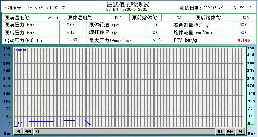 In most cases, making masterbatch through one-time pelletizing is not enough to approach an acceptable FPV performance for strict applications, such as filament, thin film etc. The ‘Preperse’ series is one of the ideal solutions for this limitation. Benefit from the pre-disperse performance and excellent dispersibility, ‘Preperse’ pigment preparation contribute to make high pigment content mono masterbatch which obtain a pigment percentage from 40% to 50%. Even some ‘ungifted’ pigments which can’t well dispersed genetically also work out high pigment content mono masterbatch. For example, Pigment Violet 23, known as the most difficult-dispersible pigment, we generate Preperse Violet RL which contains 70% pigment value and makes fully 40% mono masterbatch, with a FPV at 0.146 bar/g (see in below picture).