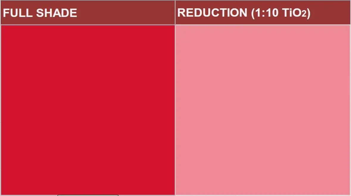 Preperse Red F5RK is the pigment concentration of Pigment Red 170F5RK. It is a red pigment with good color strength. Heat resistance is comparatively better when used within high pigment content, but not good if pigment dosage become low.Pigment Red 170 F5RK is not allowed for coloring PVC.